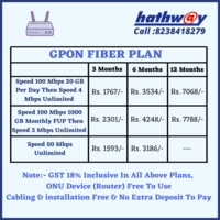 Get Hathway Internet Connection For A Home Up to 50 Mbps Download Speed With A Lightning High-Speed Broadband Internet Connection We Provide The Fastest Internet Service In Surat City at Very Affordable Price Rate Enjoy The Freedom Of Endless Possibilities With Hathway broadband Download any Songs You Like Play Your Favorite Games Attach Large Files Or Folders Upload Photos And Videos All Are Simple Easy With Lightning Fast Speed.